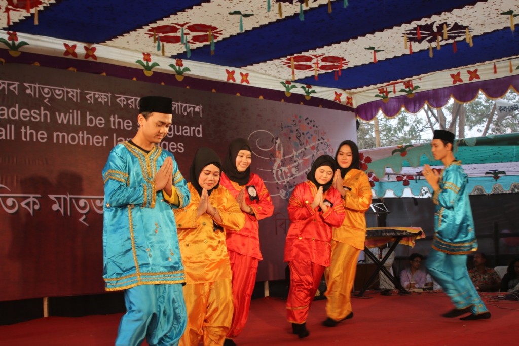অনুষ্ঠানে বিভিন্ন দেশের দূতাবাসের কর্মকর্তা ও তাঁদের পরিবারের সদস্যরা গান, নৃত্য ও কবিতা পরিবেশন করে। এর আগে শিল্পকলা একাডেমির মহাপরিচালক লিয়াকত আলী লাকীর নেতৃত্বে দেশি ও বিদেশি অতিথিরা শহীদ মিনারে ফুল দিয়ে শহীদদের প্রতি শ্রদ্ধা জানান।